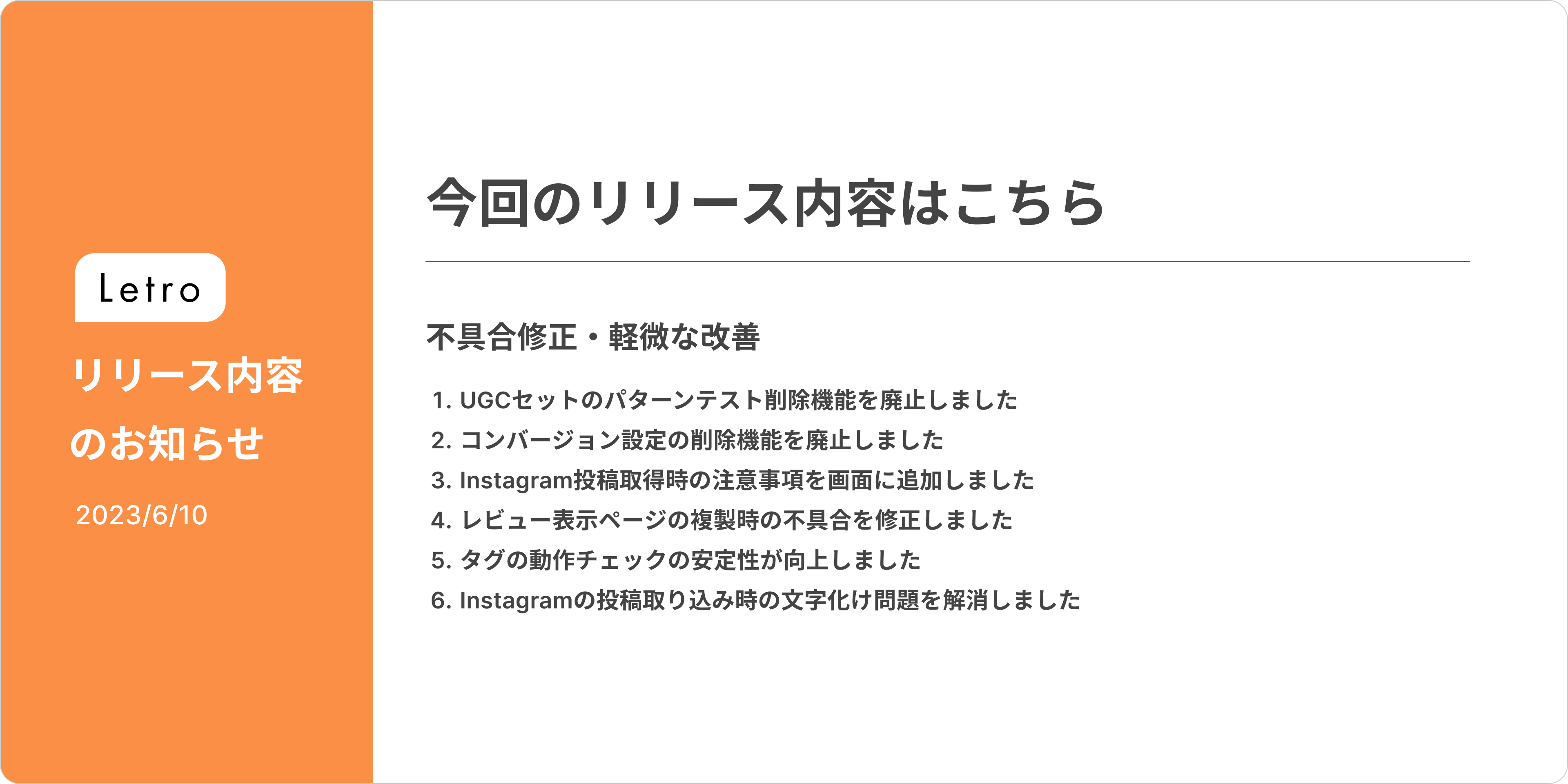 UGCセットのパターンテストを削除したり、「Letroなし」をパターンから外したりすると、過去のアナリティクスデータが参照できなくなってしまいます。