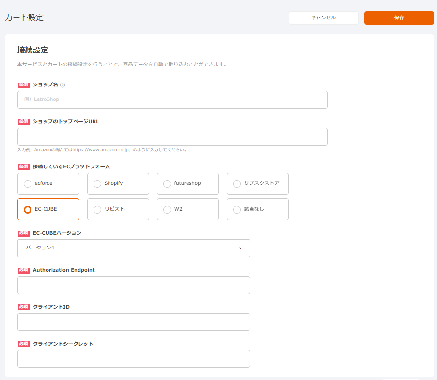 リダイレクトURL:「https://letro.jp/platforms/ec-oauth/callback」を入力